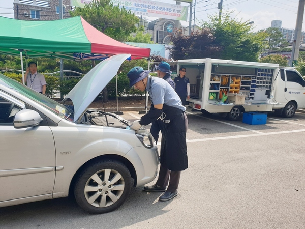 행사는 시간적·경제적 여건으로 인해 차량 정비에 어려움을 겪고 있는 장애인 20명을 대상으로 장애인복지관 주차장에서 진행됐다.
