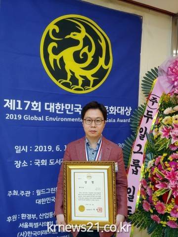 ▲ [사진=골든캣츠 김준호 부대표]골든캣츠(Golden CATs) 김준호 부대표가 ‘제17회 대한민국 환경문화대상’ 시상식에서 ‘서울특별시 서울시장상(시장 박원순)’의 영예를 안았다.