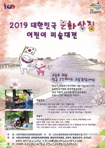▲ [사진=2019대한민국문화상징 어린이미술대전 포스터]‘2019 대한민국 문화상징 어린이 미술대전’이 7월 13일 순천만 국가정원 일원에서 개최된다.
