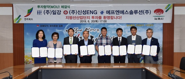 김제시는 20일 2층 상황실에서 지평선일반산업단지에 투자하는 3개사와 투자협약을 체결하였다.