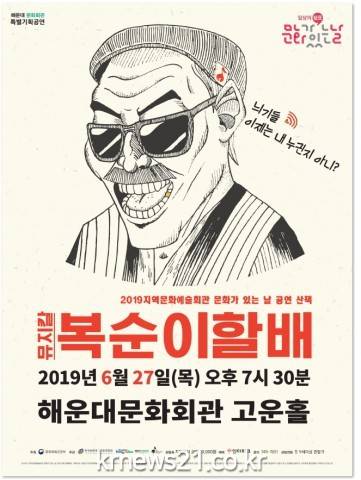 ▲ [사진=뮤지칼 복순이할배 포스터]해운대문화회관은 6월 문화가 있는 날 [뮤지칼 복순이할배]로 관객들과 함께한다고 밝혔다.