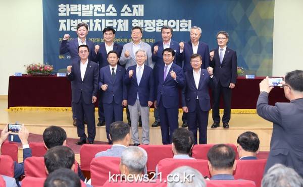 ▲ 화력발전소 소재 지방자치단체 행정협의회 창립식화력발전소 소재 지방자치단체가 주민 건강권 확보와 낙후된 지역 발전 개선, 지역 주민들과의 상생을 이룰 현실성 있는 대책 마련을 위해 손을 맞잡았다.