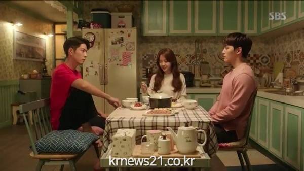 ▲ [사진제공 = ‘절대그이’ 방송 캡처]그 모습을 본 영구는 자신이 ‘인간이 아니다’라는 것에 대해 극심한 고뇌에 휩싸였다. 마왕준 또한 아무리 생각해도 영구가 로봇이라는 것, 그리고 엄다다가 로봇과 사랑을 한다는 것을 인정할 수 없어 괴로워했다. 심지어 그때 마왕준은 자신을 망가뜨리려는 금은동(홍석천)의 권모술수로 ‘폭력 행사 배우’라는 낙인이 찍혀 연기자 인생이 끝날 일생일대의 위기에 봉착했다. 그러자 마왕준은 숨어있을 곳이 필요한 것을 구실 삼아, 엄다다와 영구가 살고 있는 집을 찾아가 ‘며칠만 재워달라’고 부탁하며 두 사람을 지켜봤다.
