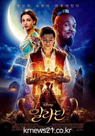▲ [사진=알라딘 홍보포스터]픽사의 레전드 시리즈 <토이 스토리 4>가 개봉 첫 주 박스오피스 1위에 오르며 130만 관객을 동원했다. 2위를 차지한 디즈니의 판타지 어드벤처 영화 <알라딘>은 무서운 뒷심을 보여주며 개봉 34일만에 700만 관객을 돌파했다. 이번 주는 키아누 리브스 주연의 <존 윅 3: 파라벨룸>과 인기 호러 시리즈 <애나벨 집으로>가 개봉했다.
