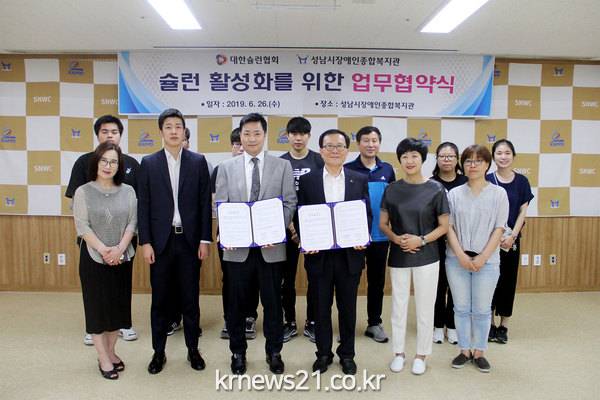 성남시장애인종합복지관(관장 채정환, 이하 ’성남장복‘)과 대한 슐런협회(회장 장철운)는 6월 26일 장애인이 일상에서 쉽게 즐길 수 있는 슐런을 보급하고 그 저변을 확대하기 위해 상호 협력을 위한 업무협약을 체결하였다.