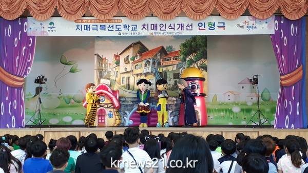 어린이 눈높이에 맞춘 캐릭터 인형극을 통해 치매에 대한 호기심과 관심을 유발하고, 긍정적 인식 및 올바른 정보를 제공하여 치매에 대한 세대 간의 이해를 돕고 치매 친화적 문화를 만들기 위해 실시했다.