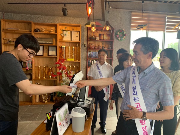 또 황한규 무장면장은 관내 1호 가맹점인 커피숍 레드핀휠에서 고창사랑상품권으로 음료를 구입해 직원들과 티타임을 가졌다.