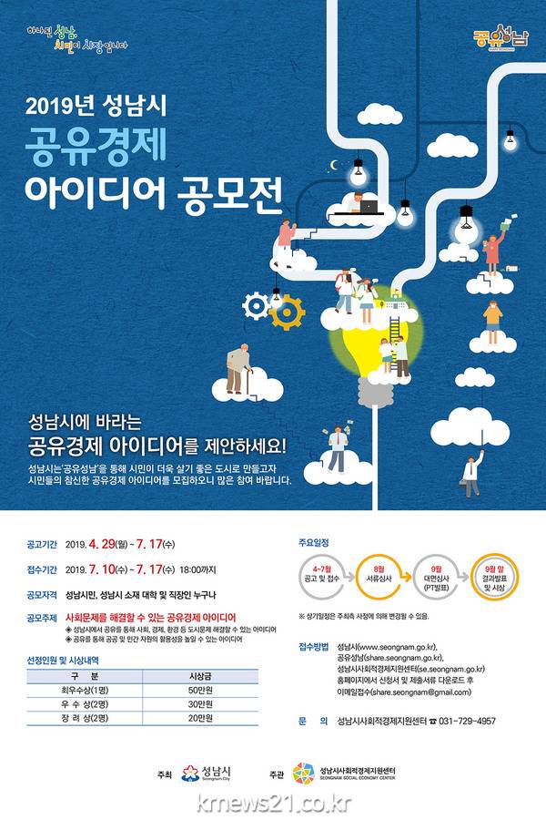 성남시(시장 은수미)는 오는 7월 10일부터 17일까지 공유경제에 관한 시민 아이디어를 공모한다.