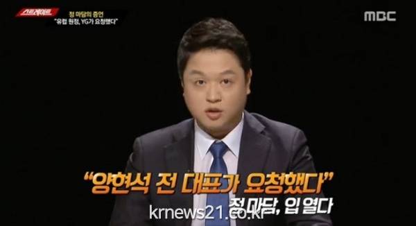 지난 8일 MBC 스트레이트에서는 YG엔터테인먼트의 해외 투자자 성접대 의혹에 관련한 핵심인물인 정마담의 인터뷰를 공개했다.