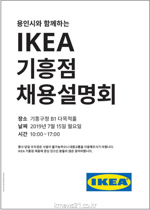 용인시는 15일 홈퍼니싱 리테일 기업 이케아 코리아가 기흥구청 다목적실에서 올해 말 오픈 예정인 기흥점 채용설명회를 연다고 밝혔다.