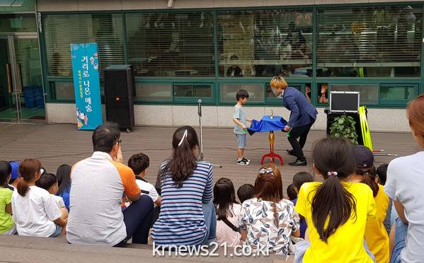 시흥시 중앙도서관에서는 문화예술과와 협력하여 <</span>거리로 나온 예술>의 일환으로 ‘예술이 도서관에 찾아왔어요’를 운영한다.