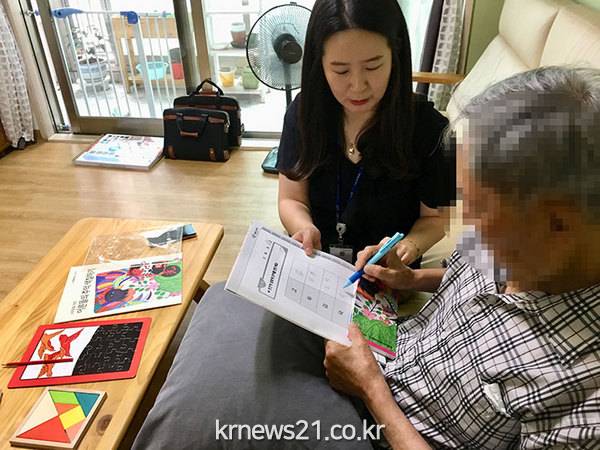 용인시에선 간호사나 사회복지사가 치매 안심 센터에 나오기조차 어려운 치매 어르신을 월 1회 방문해 치매 증상에 따른 맞춤형 건강관리를 하고 있다.