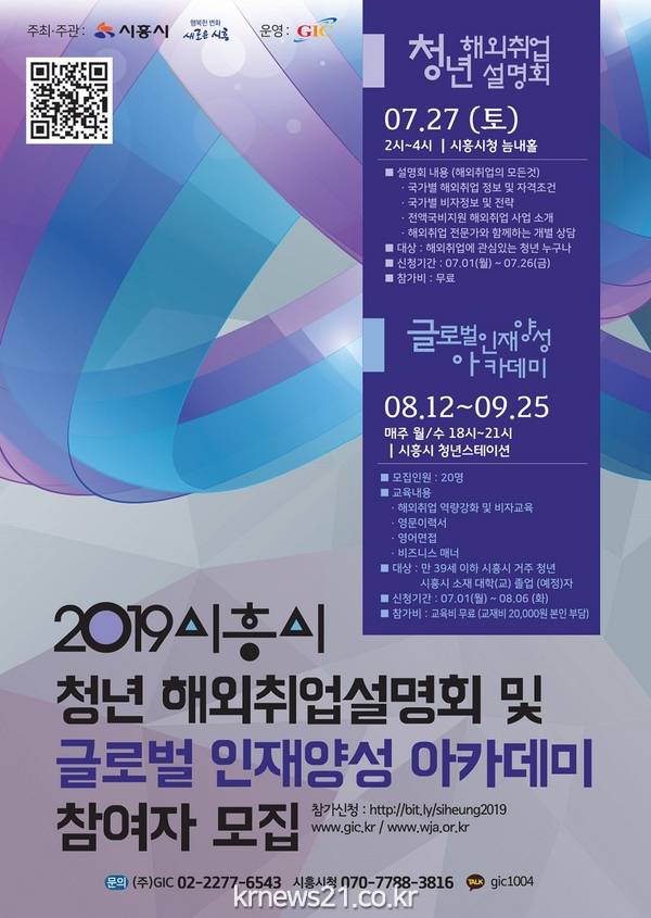시흥시(시장 임병택)는 시흥시 거주 청년들의 글로벌 역량을 강화하고, 해외 취업을 지원하기 위해 해외 취업 설명회 및 글로벌 역량 강화 아카데미 참가자를 모집한다.