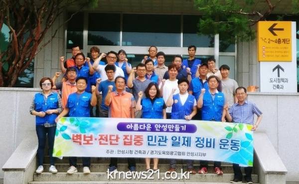 이날 일제정비는 민관 합동으로 안성 1, 2, 3동, 대덕면 등의 도심지 주요 교차로에 불법 게시된 현수막과 벽보, 전단지에 대한 정비를 하여 옥외광고질서를 정립하고자 진행됐다.