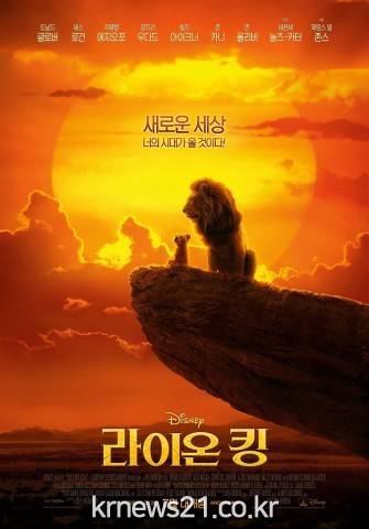 ▲ [사진=라이온 킹 포스터]마블의 슈퍼히어로 시리즈 <스파이더맨: 파 프롬 홈>이 2주 연속 박스오피스 1위에 오르며 690만 관객을 동원했다. 2위를 차지한 디즈니의 판타지 어드벤처 <알라딘>은 꾸준한 입소문을 통한 역주행 흥행으로 천만 관객을 돌파했다. 이번 주는 디즈니의 또 다른 라이브 액션 신작 <라이온 킹>이 개봉했다.