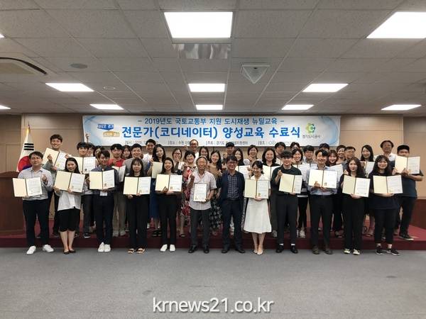 경기도 도시재생지원센터(센터장 권순형)는 지난 19일 수원 더함 파크에서 2019년 도시재생 뉴딜 전문가(코디네이터) 양성 교육 수료식을 가졌다고 밝혔다.