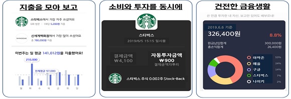예를들어 스타벅스에서 4100원자리 커피 한잔을 카드로 결제하면 900원 어치의 스타벅스 주식을 매수하는 방식이다. 1주당 가격이 1만원이 넘는 주식도 소숫점 단위로 쪼개 차곡차곡 사 모을 수 있다. 신한카드·신한금융투자의 서비스는 금융규제 샌드박스 최초로 이해상충 방지를 위한 계열사 간 정보 공유 규제에 특례를 적용했다.