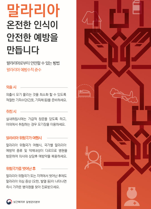 시민들에게 “권태감이나 서서히 상승하는 발열이 수일간 지속되거나 오한, 발열, 발한 후 해열이 반복적으로 나타날 경우 가까운 보건소나 의료기관에 방문해 진료를 받아야 한다”고 당부했다.