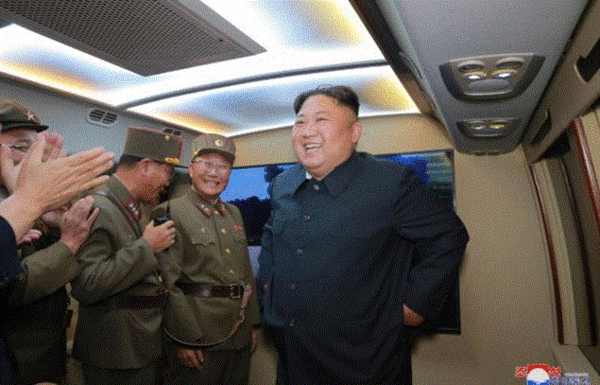 김정은 북한 국무위원장이 6일 신형전술유도탄 발사를 참관했다며