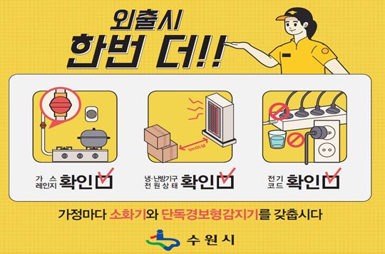 수원시 영통구(청장 송영완)는 8월부터 9월까지 화재 안전취약가구의 안전의식 제고를 위해 “외출 전 전기·가스 등 전원 차단 확인” 내용이 담긴 자석스티커를 제작하여 배부한다.