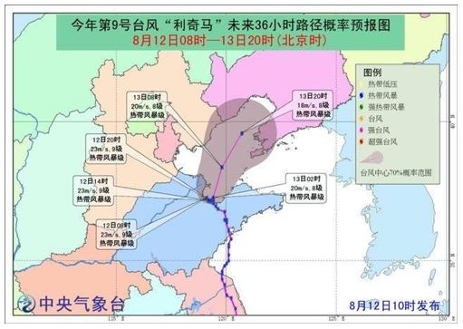 13일 중국 중앙기상대에 따르면, 레끼마는 전날 산둥(山東)반도를 관통해 통과한 뒤 보하이(渤海)만을 거쳐 랴오닝(遼寧) 방향으로 북상하고 있다.