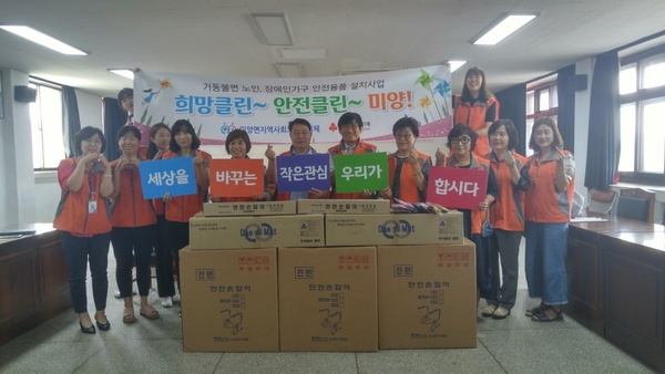 안성시 미양면지역사회보장협의체(공공위원장 김영석 민간위원장 송영철)는 지난 21일 안전클린 희망클린 미양 사업을 추진했다. 본 사업은 관내 거동이 불편한 노인 장애인 가구 중 안전에 취약한 가구를 선정하여 안전손잡이 안전계단 변기거치용 안전손잡이 미끄럼 방지매트 병해충 차단을 위한 방충망 설치 등 가구 상황에 맞는 맞춤형 안전용품을 설치해 주는 사업이다. 이날 송영철 민간위원장을 비롯하여 14명의 회원들은 대상가구를 방문하여 안전용품을 직접 설치하고 가구의 어려움을 함께 청취하는 시간을 가졌다. 이날 사업에 참여한 주예순 회원은 거동이 불편하여 집안 청소도 어려운 가정에 안전용품을 설치하고 사고를 미연에 방지할 수 있게 도움을 줄 수 있어서 기쁘다 리거 말했다. 김영석 공공위원장은 무더운 날씨에도 사업에 참여해 주신 회원님께 감사드린다며 소외되고 어려운 이웃들을 위한 사업을 지속적으로 발굴 추진해 나가겠다고 밝혔다.
