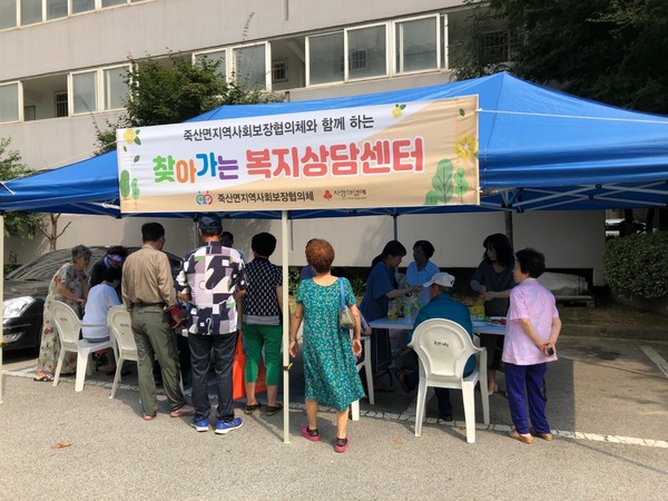 안성시 죽산면지역사회보장협의체는 지난 21일 복지사각지대발굴을 위한 홍보활동으로 죽산면 장원리 지에프(다빈치)아파트에서 찾아가는 복지상담센터를 운영했다. 찾아가는 복지상담센터는 주민들이 편하게 다가올 수 있도록 접근성을 높여 마을별로 찾아가 다양한 복지사업을 안내하고 보건상담 등을 진행한다. 이날 협의체는 복지 및 보건 정신건강상담을 함께 진행하고 현장에서 가정방문을 하여 복지사각지대 발굴에 효과성을 더했다. 이와 함께 죽산보건지소에서 혈당 혈압을 측정하는 등 기초건강상담은 물론 의료사각지대에 있는 주민을 발굴에 힘을 쏟았으며 안성시정신건강복지센터는 우울증검사 각종 정신건강증진사업 및 자살위험상담 등을 진행했다. 구본철 민간위원장은 이웃이 적극적으로 주변을 살펴서 복지사각지대 없는 죽산면을 만들기 위해 최선을 다할 것이라며 주변에 어려운 이웃이 발견되면 죽산면으로 꼭 연락해 주길 바란다고 전했다.