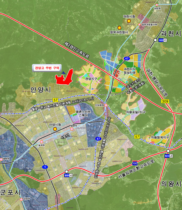 안양 관양고 주변 도시개발사업은 2022년 준공을 목표로 총사업비 1천6백여억 원을 투입해 1,300여 세대 주거단지를 조성하는 사업으로, 3기 신도시를 포함한 수도권 주택 30만 호 공급계획 중 경기도시공사가 참여하는 사업에서 선도적으로 보상에 착수하는 사업지구이다.