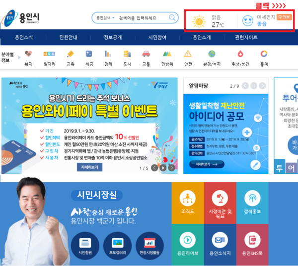 용인시는 오는 28일부터 미세먼지 등 지역별 대기 정보를 시청 홈페이지를 통해 실시간 제공한다.