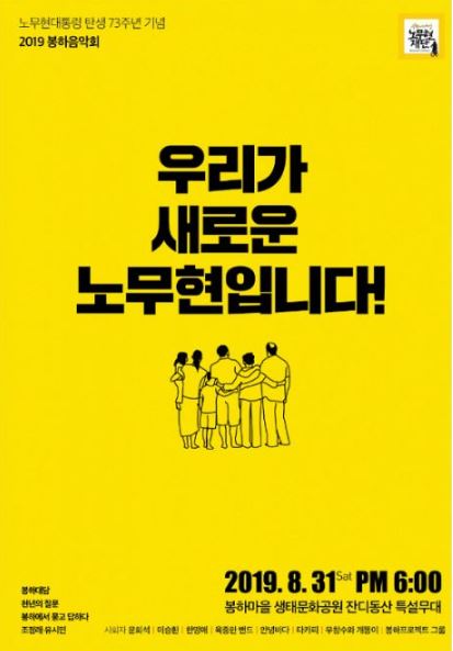 또 배우 윤희석의 사회로 오후 7시부터 펼쳐질 공연에는 가수 한영애, 이승환, 육중완 밴드, 안녕바다, 우창수와 개똥이, 봉하 프로젝트 그룹이 무대에 오른다.