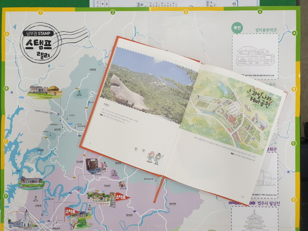 스탬프 랠리 지도와 기념품 배부는 영동군 국악체험촌, 옥천군 정지용문학관, 보은군 속리산관광안내소이다.