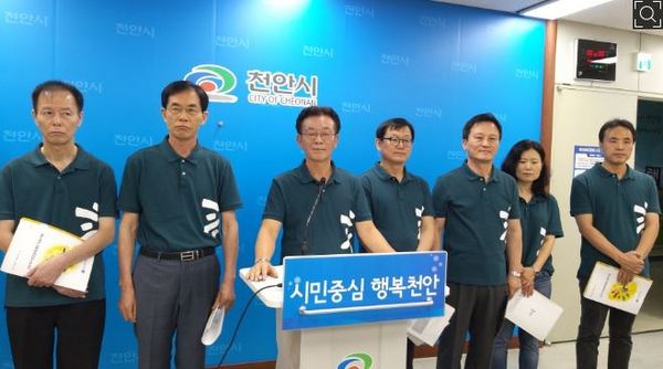 안대진 천안문화재단 대표이사(왼쪽 세 번째) 주요사업계획 발표 모습