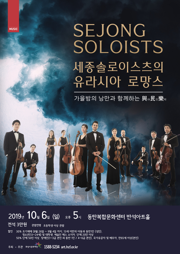 (재)화성시 문화재단(대표이사 최형오)은 10월 6일 동탄 복합문화센터 반석 아트홀에서 <</span>세종솔로이스츠의 유라시아 로망스>를 기획공연으로 선보인다.