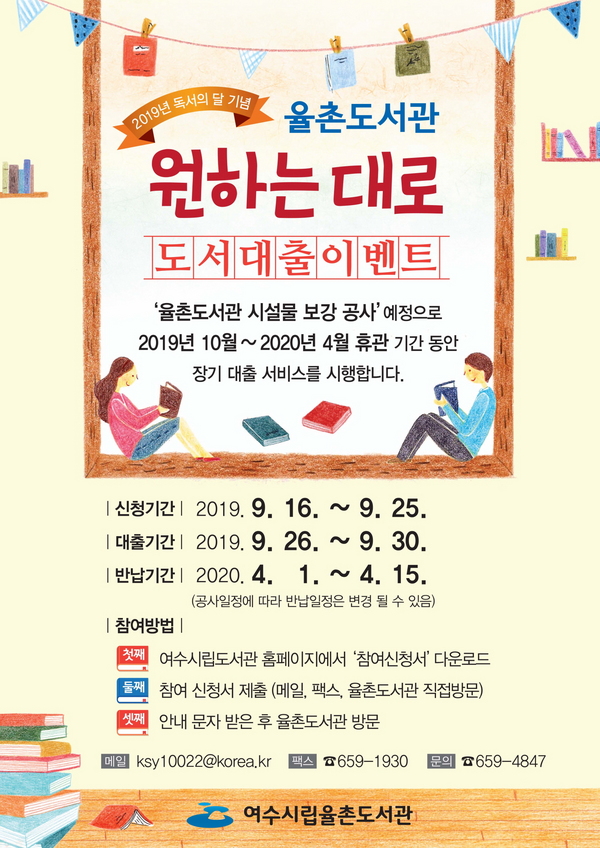 ▲ 여수시 율촌도서관 원하는 대로 도서대출이벤트 포스터