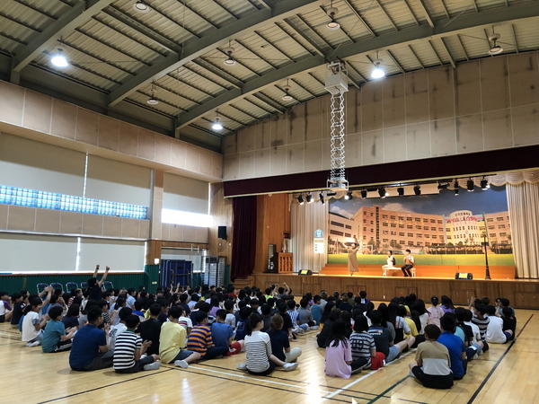 ▲ 지난 7월 여수시 신기초등학교에서 열린 ‘청소년 진로 뮤지컬’ 공연 모습