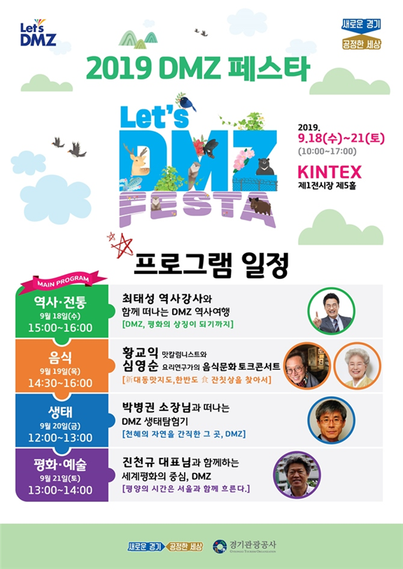 한편 ‘DMZ 페스타’는 경기도가 ‘9.19 평양 공동선언’ 1주년을 기념해 ‘남북평화’에 대한 경기도민의 염원을 전 세계에 알리고자 DMZ 포럼, Live DMZ, ART DMZ 등과 함께 개최하는 ‘Let’s DMZ’ 행사의 일환이다.