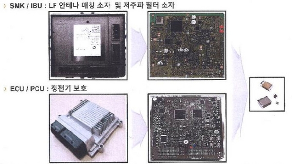 해당 부품은 차량 외부에서 스마트키를 작동하면 차량 내부에서 그 신호를 받아 전류를 구동하는 장치 등으로, 최근 스마트키가 상용화하면서 대부분 차량에 장착돼 있다는 게 환경부 설명이다.