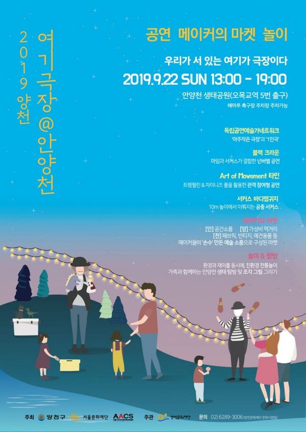 양천문화재단(이사장 김수영)은 오는 9월 22일(일) 오후 1시부터 안양천 생태공 원에서 ‘2019 양천, 여기극장 @안양천’을 개최한다.