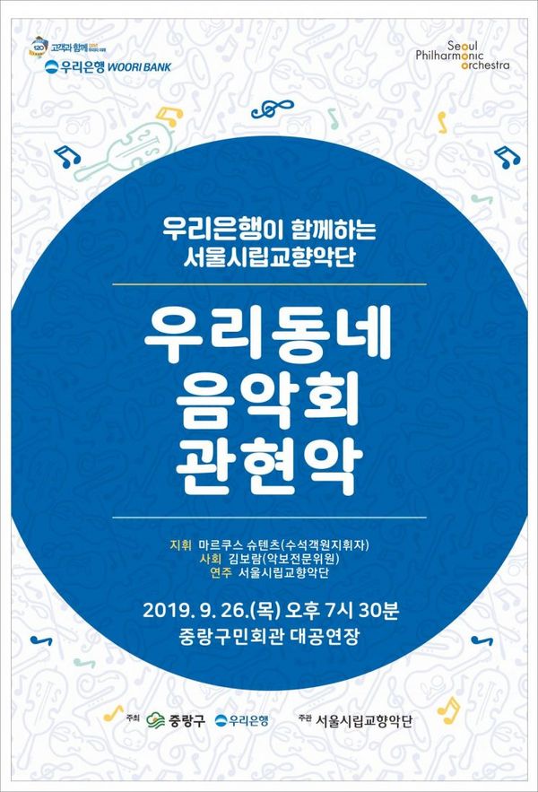 중랑구(구청장 류경기)는 오는 26일 오후 7시 30분 중랑구민회관 대공연장에서 온 가족이 함께 즐길 수 있는 서울시립교향악단의 ‘우리동네음악회’를 개최한다.
