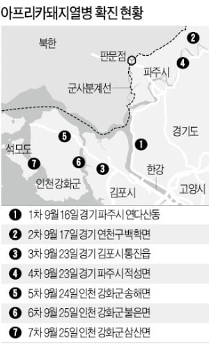 ASF 의심신고는 갈수록 늘고 있다. 이날만 해도 인천 강화군 강화읍, 경기 연천군과 양주시 등 3곳에서 의심신고가 접수됐다. 양주시는 처음으로 의심신고 리스트에 올랐다. 정밀 검사 결과에 따라 ASF 발생 지역은 더욱 확대될 수 있다.