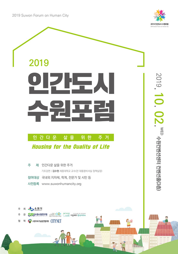 10월 2일 수원컨벤션센터에서 ‘인간다운 삶을 위한 주거’를 주제로 ‘2019 아시아 인간도시 수원포럼’을 열린다.