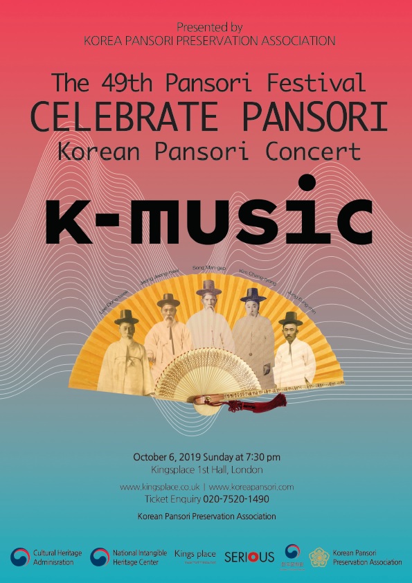 ㅇ (사)한국판소리보존회에서 주관하는 이번 ‘판소리유파대제전’은 케이뮤직페스티벌(K_MUSIC FESTIVAL-주최 주영한국문화원, 시리어스)을 테마로 판소리 다섯마당(춘향가․심청가․흥보가․수궁가․적벽가)을 한눈에 볼 수 있는 공연이다.