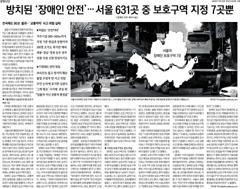 7월 ‘이 달의 좋은 기사’로 선정된 경향신문 <방치된 ‘장애인 안전’… 서울 631곳 중 보호구역 지정 7곳뿐>은 교통사고 위험에 노출돼 있는 장애인을 보호하기 위해 장애인 보호구역을 지정하고 있지만 운영실태가 부실하다는 기사이다. 방귀희(한국장애예술인협회 회장) 위원은 “장애인의 외출이 잦아지고 있지만 장애인 안전 문제는 무관심 속에 방치되고 있는 가운데 장애인 보호구역에 대한 기사는 사회적 이슈가 되기에 충분한 기사”라고 평가했다.