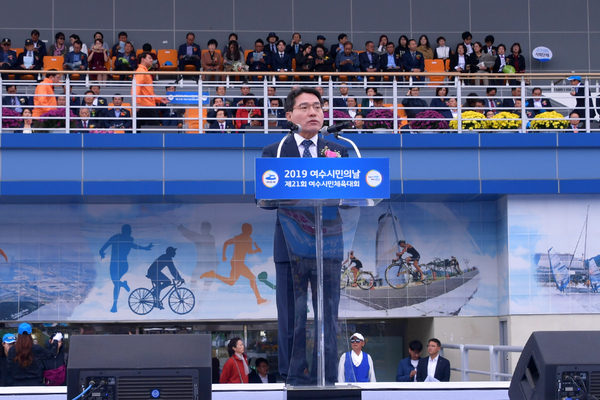 ‘2019 여수시민의 날 기념행사’가 15일 오전 여수시 진남경기장에서 화려하게 막을 올렸다.