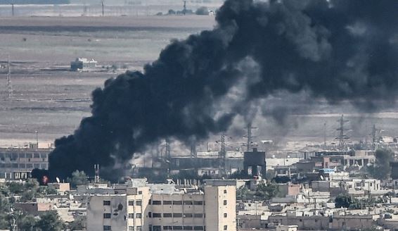 13일(현지시간) 터키군의 시리아 북동부 지역 쿠르드족에 대한 공격으로 국경도시 라스 알-아인에서