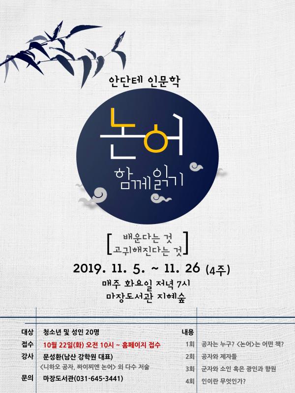 이천마장도서관 안단테 인문학 「논어 함께 읽기」운영