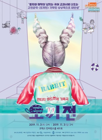 서울문화재단(대표이사 김종휘)과 한국무역협회(회장 김영주)는 ‘서울메세나 지원사업-한국무역협회 스페셜트랙’에 선정된 판타지 어드벤처 가족극 ‘토끼전’(극곡장소 마방진)을 11월 2일(토)부터 3일(일)까지 코엑스 컨퍼런스룸(401호) 무대에 올린다. 가족음악극 ‘토끼전’은 서울문화재단의 지원금과 한국무역협회의 기부금, 코엑스 공연장 지원으로 마련됐다.