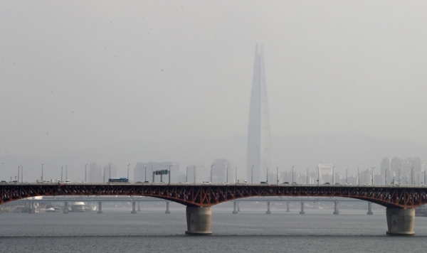 서울 잠실 일대가 미세먼지로 덮여 있다.