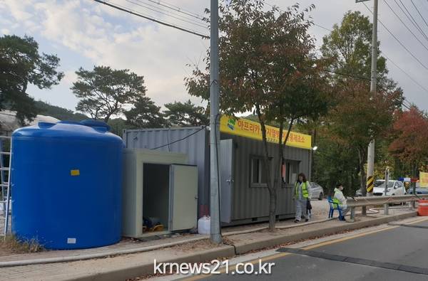 의정부시 관내 5개 청소대행업체인 (주)녹색환경, (주)미래환경, (주)의정환경개발, ㈜오커, 일창환경(주)의 회원사 대표 ㈜녹색환경 김성일 사장이 10월 31일 도시농업과를 방문하여 아프리카돼지열병(ASF) 방역 초소 근무자들을 위한 컵라면, 커피 등 100만 원 상당의 위문품을 전달했다.