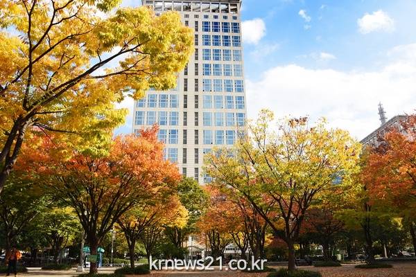 부산시청 야외 녹음광장이 오색빛깔 단풍으로 탈바꿈되어 시민들이 가을 정취를 만끽할 수 있는 장소로 이용되고 있다.